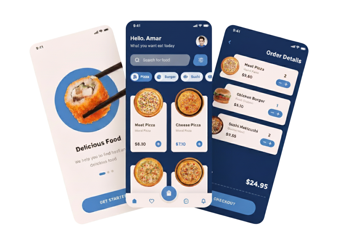 Customers, Restaurant Owners, and Independent Delivery Agents can all register and use the application.